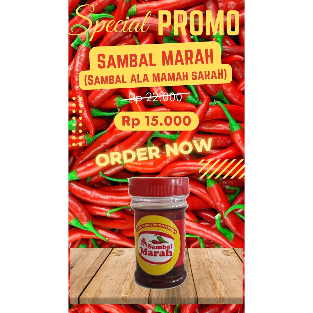Perkenalkan Sambal MARAH alias ala mamah sarah, produk homemade yang hadir untuk memanjakan lidah kalian.