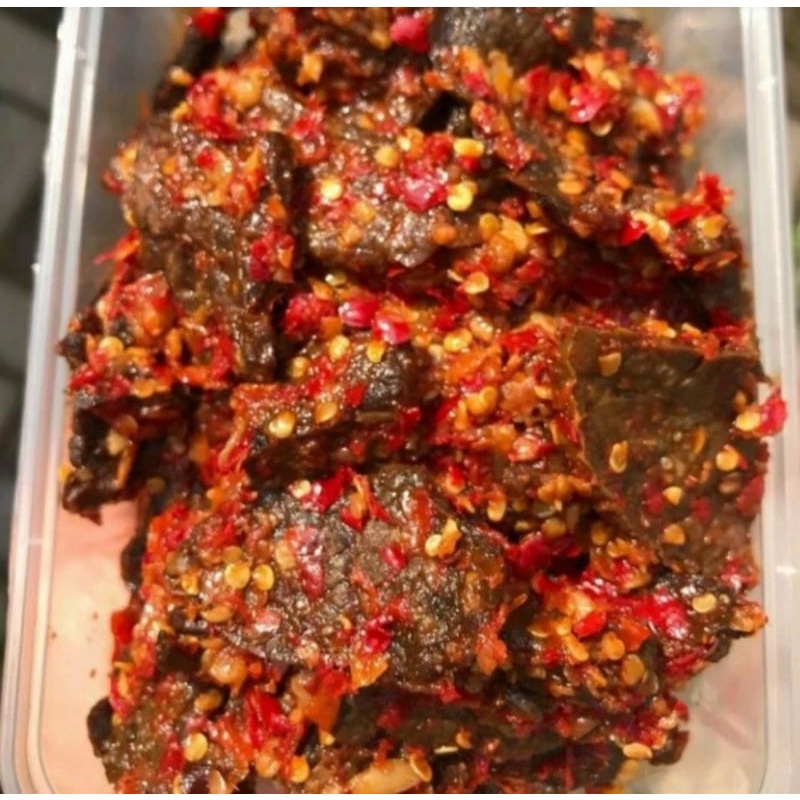 Sambal pedas dengan potongan daging paru yang empuk dan nikmat