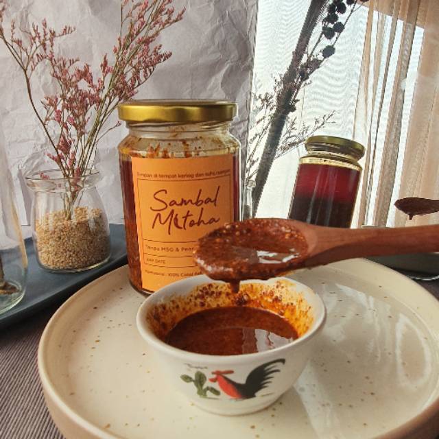 Sambal khas Bakso Mitoha terbuat dari 100% cabai asli, kacang, dan minyak. Sambal ini juga bebas dari bahan pengawet dan bahan kimia lainnya, tentunya tanpa MSG.