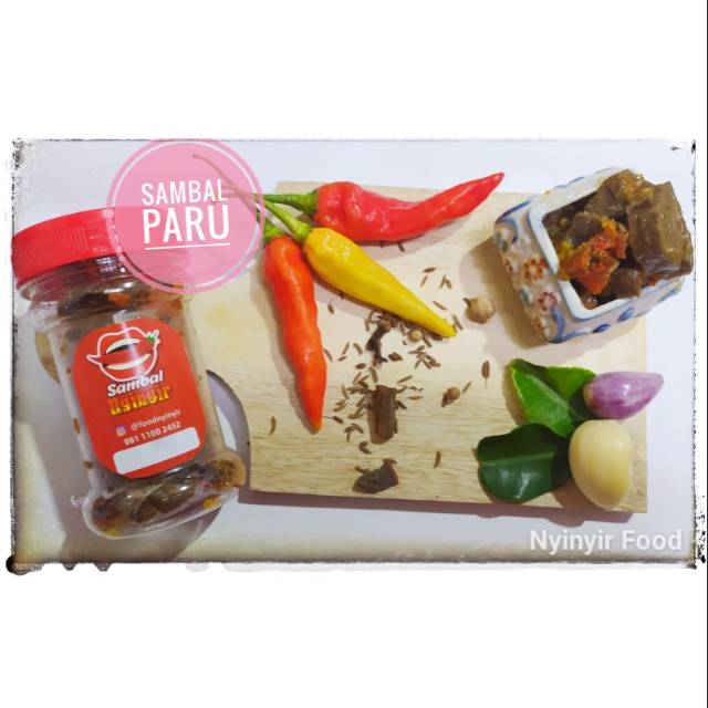 Varian baru dari sambal nyinyir. Perpaduan sambal Dan paru sapi Yang empuk dan membuat sensasi Yang lezat di mulut anda sehingga membuat ketagihan