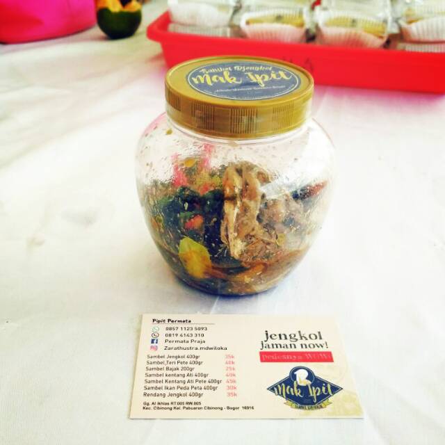 Sambal Peda Pete ini merupakan salah satu varian dari Sambel Djengkol Mak Ipit. Dibuat dari peda dan pete yang dipadukan dengan bumbu pilihan. Diolah oleh tangan2 trampil secara rumahan, sehingga sambal peda ini sangat cocok disantap langsung atawa dibawa sebagai oleh-oleh sanak famili.Tidaj mengandung bahan pengawet, ketahananya di suhu ruangan 3- 4 hari. Dimesin pendingin seminggu.