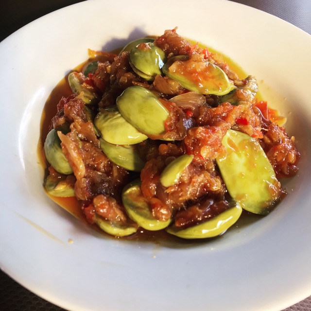Pete, cabai rawit, bawang merah dan putih, garam dan gula.