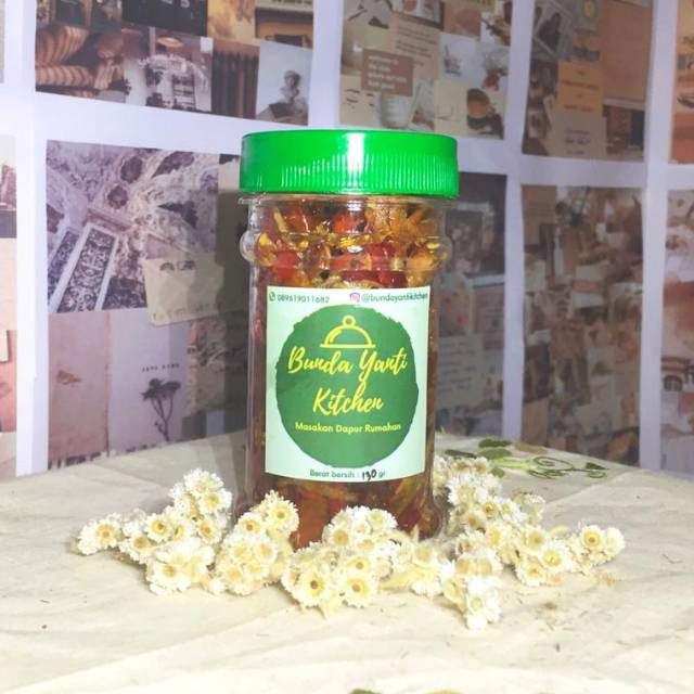 Sambal dengan bahan cabai keriting, cabai rawit, tomat, bawang merah dan bawang putih kualitas terbaik yang dipotong. Kemudian diberikan teri (tidak diulek) yang sudah digoreng matang.