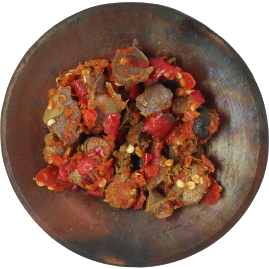 Citarasa : Sambal yang berbahan dasar potongan rempelo ati dan sambal bawang. Sambal Rempelo Ati memiliki rasa pedas dan gurih.