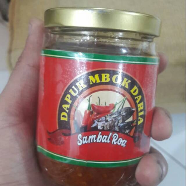 Sambal Roa Mbok Daria kemasan isi netto 200gram Harga Rp. 50.000,- minat silahkan langsung Order Bos, pre order 2 hari, jadi ada Pesanan masuk, dibuatkan, 2 hari kemudian dikirim.