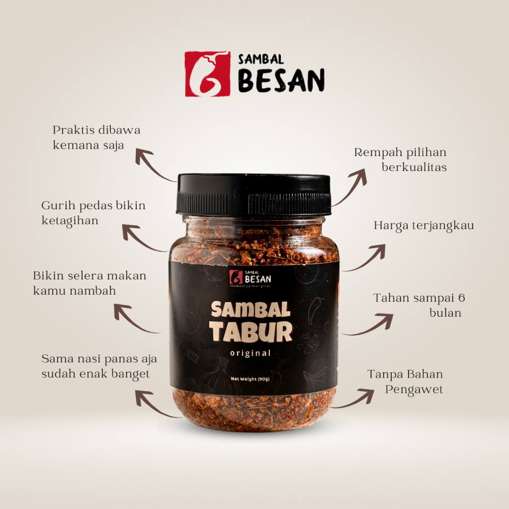 "TOP BEST SELLER karena cita rasa khas sambal kering yang unik, gurih dan pedas yang bikin kamu terus ketagihan, jadi pengen makan terus, praktis makan dimana saja, dibawa kemana saja dan kapan saja, langsung tabur diatas nasi panas sudah paling nikmat mantap, mau ditambah diatas ditelur dadar, ayam goreng dan sebagainya sudah paling cocok dan nikmat."