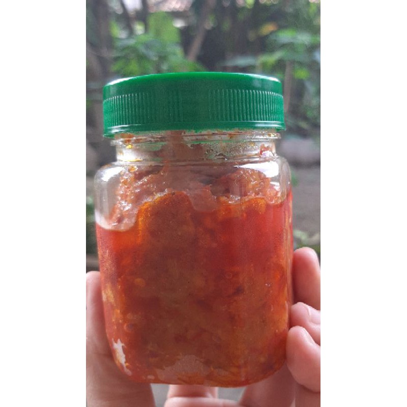 sambal siap saji yang dibuat dengan bahan baku cabai, durian fermentasi, ikan teri pilihan dan bumbu lainnya.