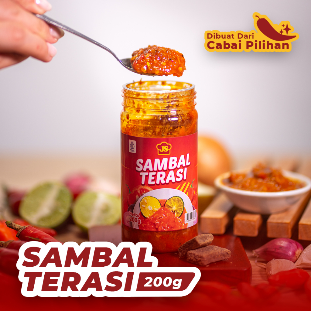 Sambal Terasi dengan aroma nikmat & pedas yang mantap, terbuat dari cabai pilihan.