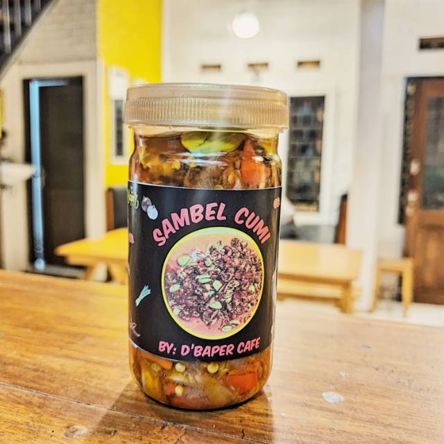 Sambal cumi pete yang dibuat dari bahan-bahan berkualitas tinggi , dengan cabai rawit yang super pedas .