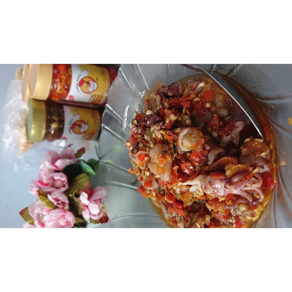 sambal yang terbuat terdiri dari bahan-bahan pilihan yang fresh dan dipadukan dengan baby cumi fresh dijamin kualitas dan higienisnya dan dengan pedas yang nendang membuat makan semakin berselera.