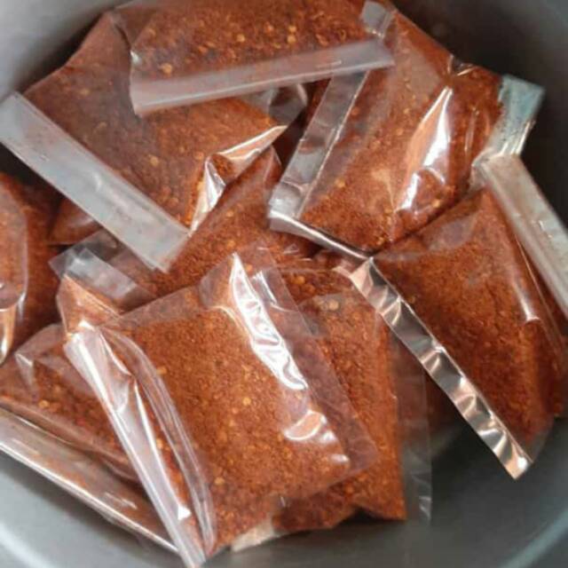 Sambal kering bubuk ini asli buatan hanmade gk pake blender yha. Ini di tumbuk kaya jaman dulu agar tidak mengurangi rasa khas nya. Rasa di jamin mantul gaes... Harga hemat