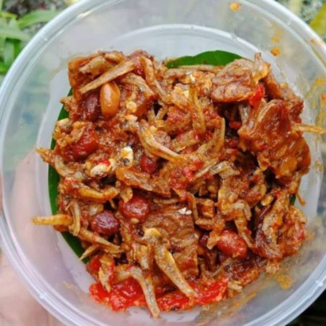 KOMPOSISI : CABE MERAH, bawang merah, bawang putih, teri medan, kacang tanah, gula, garam
