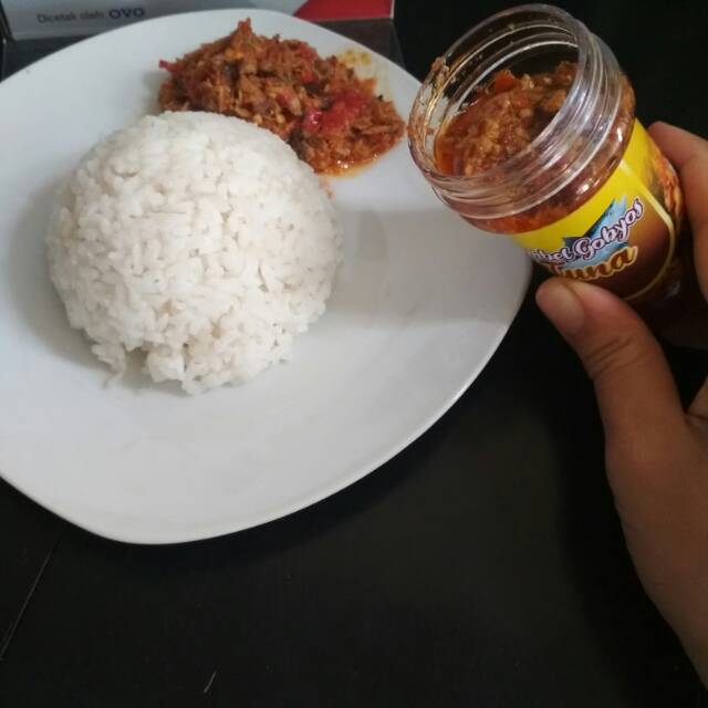 Sambal ikan tuna dengan cabai segar dan bumbu2 pilihan. Yuks cobain sis. .reseler welcome kami langsung produsen . Sambal rumahan yang mantul guys.