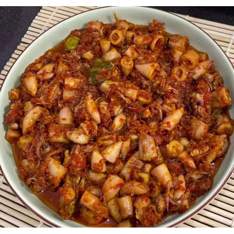 Menggunakan Cumi Asin fresh, dicampur dengan sambal mercon.