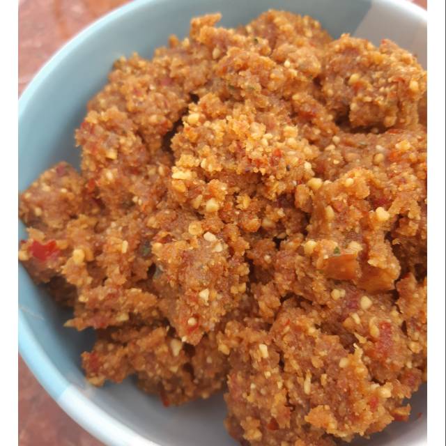Komposisi: kacang, cabe, bawang putih, gula merah, garam, asam jawa, daun jeruk