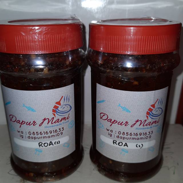 Sambel Roa dari ikan Roa dan full ikan Roa khas Manado dengan varian rasa tidak terlalu pedes atau sedang.