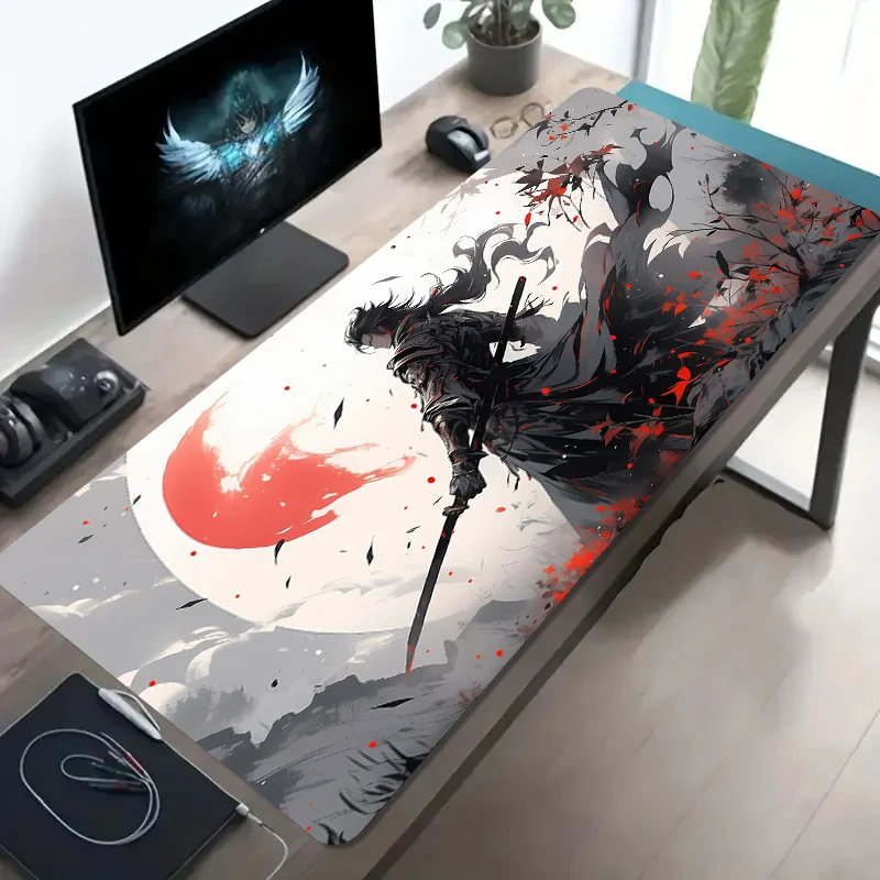 Samurai Warrior Ink Wash Gaming Mouse Pad Large Non-Slip Rubber Desk Mat Extended for Gamers Office