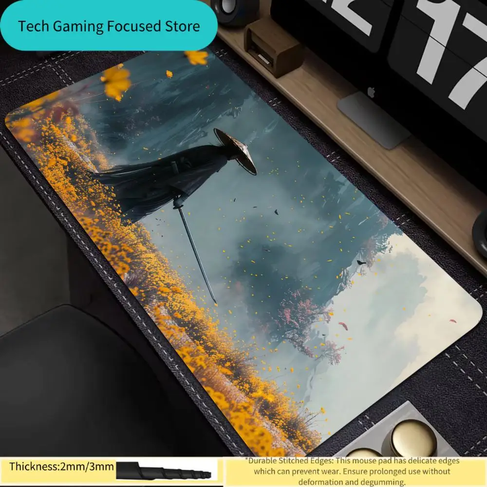 Samurai Warrior Mouse Pad Gamer Computer Accessories Keyboard Table Mat Large Rubber Mousepad XXL Gaming Laptop Desk Accessory