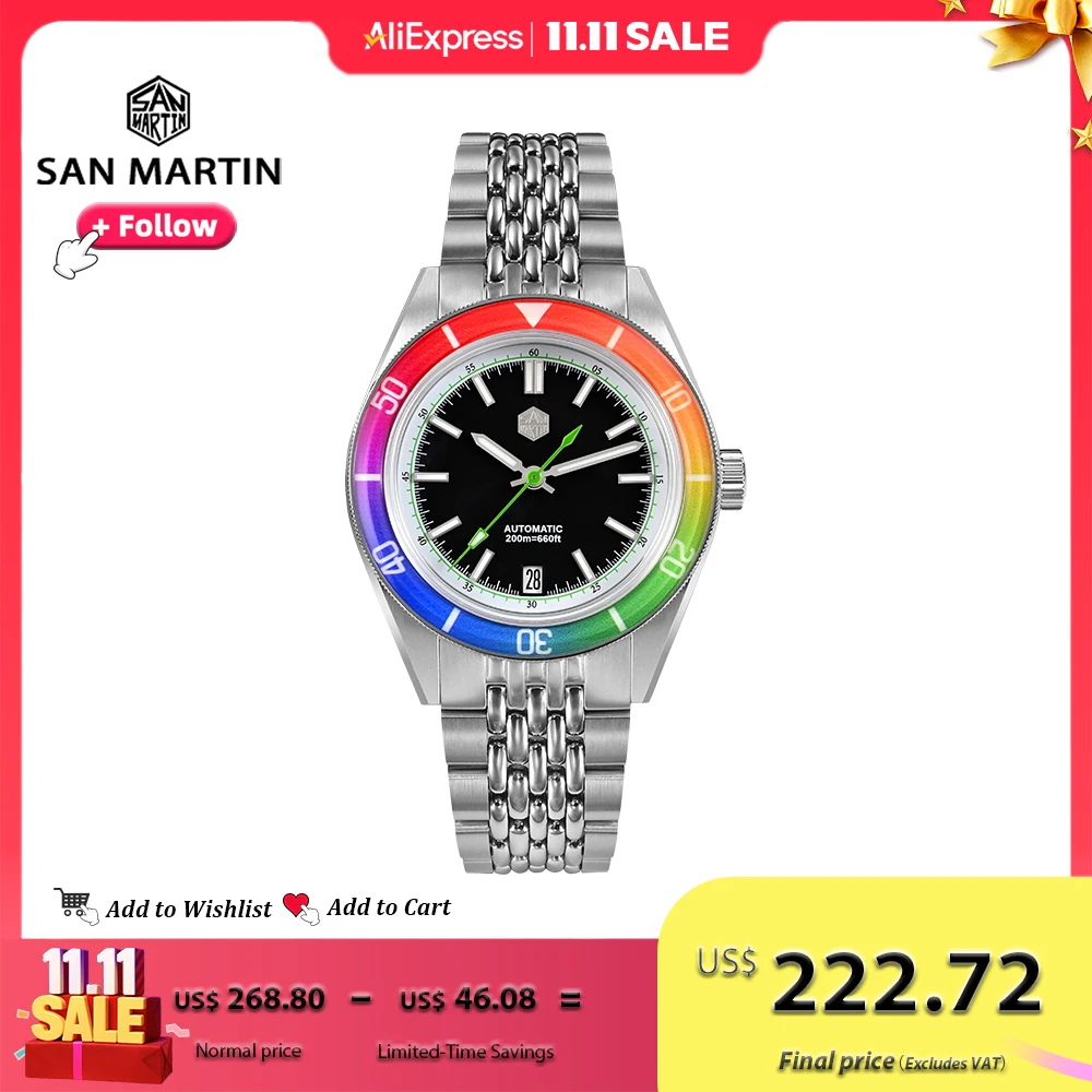 San Martin, оригинальный дизайн, 39,5 мм, модные мужские часы для дайвинга, сапфировый Радужный безель, механические часы, светящаяся дата, 200 м, SN0116