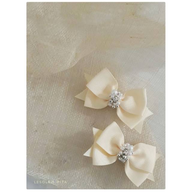 Simple classic pita dengan hiasan mutiara dan preciosa diamond ditengahnya. 1 set isi sepasang, dan ada beberapa pilihan warna. Bs chat dulu sebelum memesan...