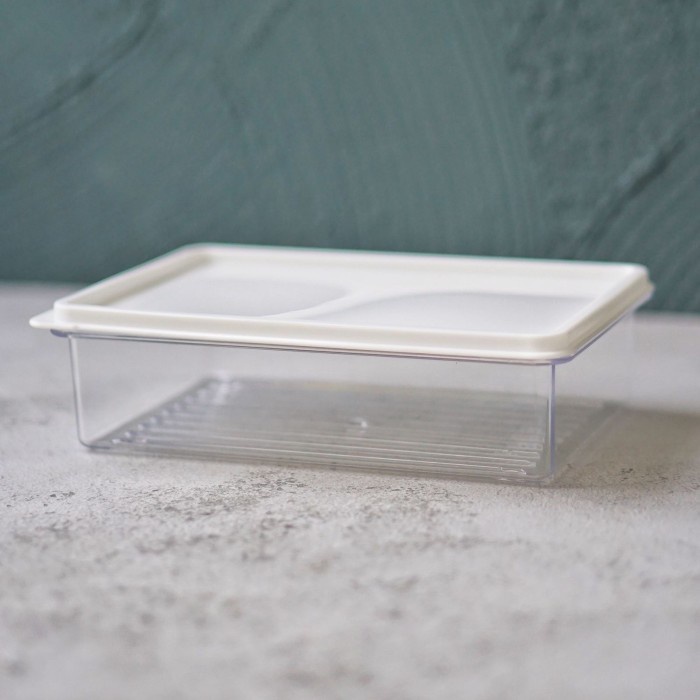 Storage segi warna transparan dan bentuk persegi panjang memudahkan untuk mengenali isi dan menghemat tempat didalam kulkas. Dapat digunakan untuk menyimpan buah-buahan, sayur, daging dan bahan makanan lainnya.