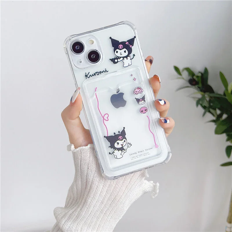 Sanrio Cinnamonroll Kuromi Cartoon Card Holder Phone Case For iPhone 13 12 11 Pro Max XR XS MAX X Girl Shockproof Soft TPU Shell