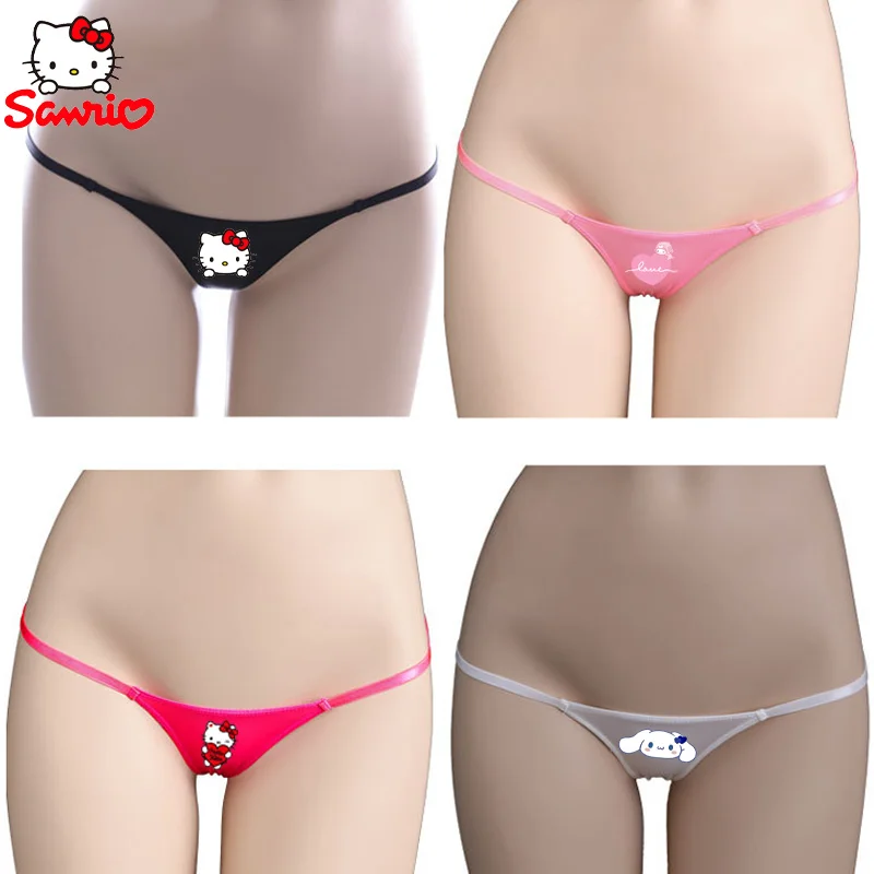 Sanrio, Hello Kitty Cinnamoroll My Melody сексуальное бикини с низкой талией микро мини-стринги из ледяного Шелка Бесшовные трусики Экзотические женские