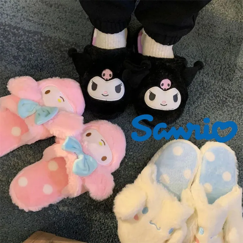 Sanrio Kuromi подарок для дома и дома моя девочка Лолита зима хлопок Cinnamoroll осень теплые плюшевые тапочки Мелодия Милая обувь Тапочки