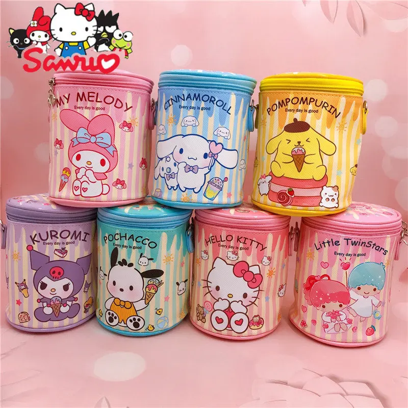 Sanrio Melody Kuromi Hello Kitty Cinnamoroll полачко Водонепроницаемая цилиндрическая сумка через плечо цилиндрический дорожный рюкзак для хранения