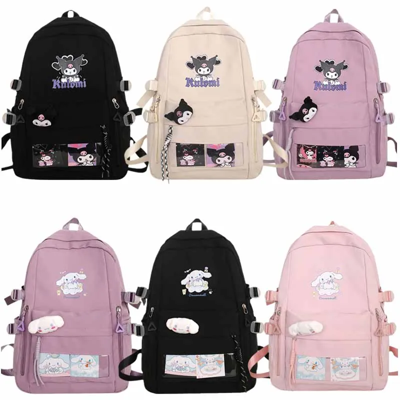 Sanrioed Cinnamoroll Kuromi, школьный ранец для учеников из мультфильма, милый вместительный рюкзак для хранения для девушек, сумки для книг