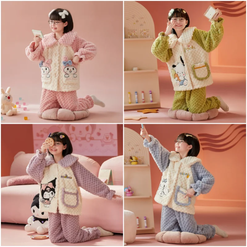 Sanrios Cinnamoroll Kuromi My Melody понравились HelloKittys для детей девочек зимняя теплая Женская одежда толстая Пижама