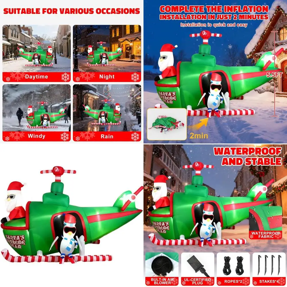 Santa & Penguin Helicopter Ride Inflatable Christmas Decor, 8ft x 5.5ft, LED Lights