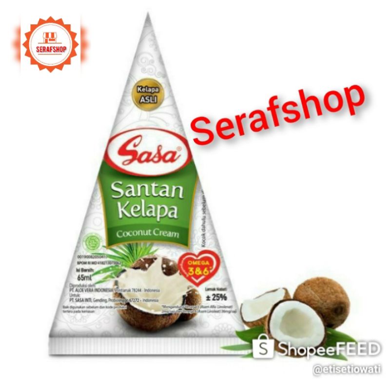Sasa santan cair 65 ml merupakam santan cair instan yang di proses dari santan asli secara higienis sehingga terjaga kualitasnya. sebagai bahan masakan, sasa santan cair akan membuat masakan anda menjadi lebih gurih dan nikmat