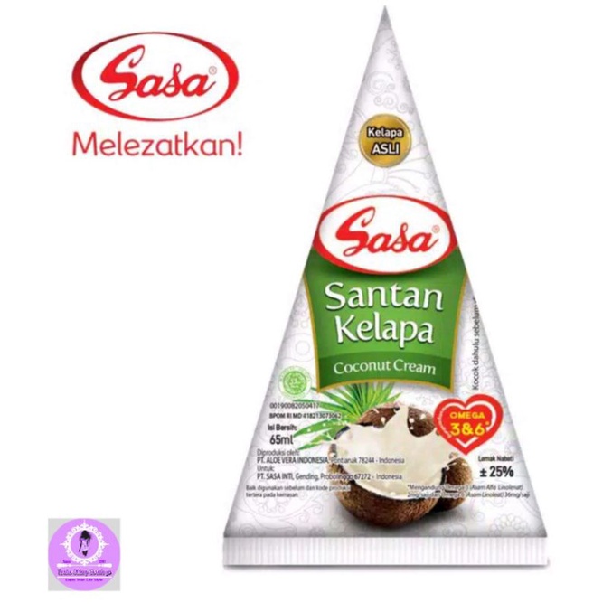 Sasa Santan Cair 65 ml merupakan santan cair instan yang diproses dari santan asli secara higienis sehingga terjaga kualitasnya. Sebagai bahan masakan, Sasa Santan Cair akan membuat masakan anda menjadi lebih gurih dan nikmat.