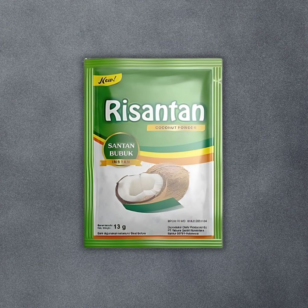 1 sachet berisi 13g Santan Bubuk Risantan. Terbuat dari Kelapa pilihan yang cocok untuk berbagai macam masakan.