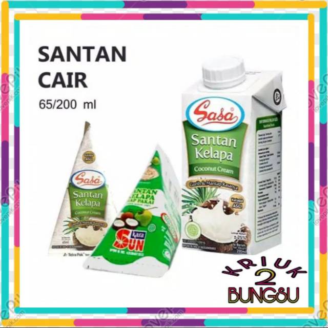 Hai kak santan cair ini ada 2 varian dan 2 kemasan ya kak 65 ml & 200 ml.