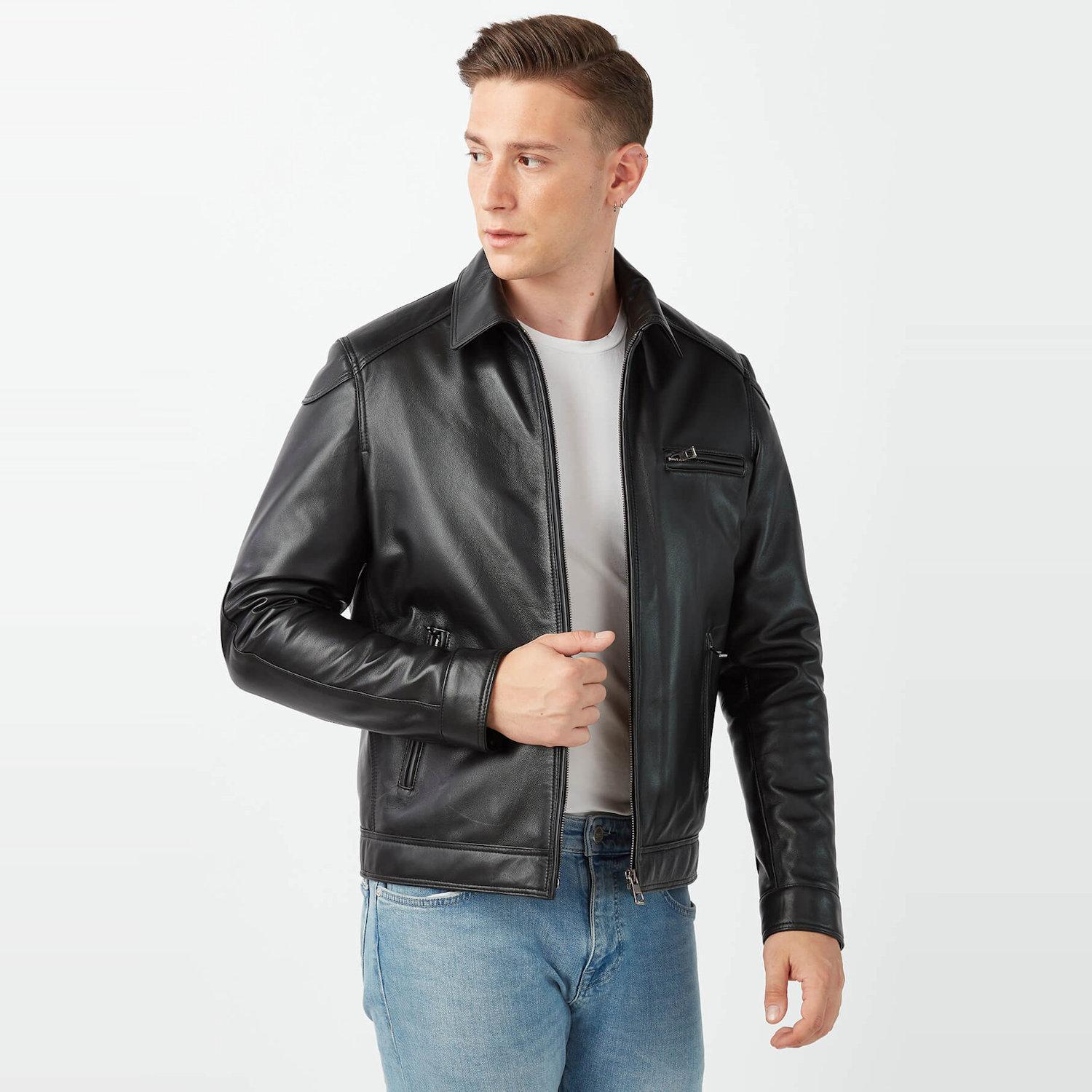 Santino Черное мужское пальто из натуральной кожи XS чёрный