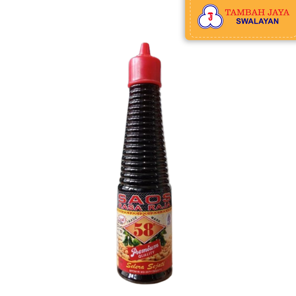 RASA RAJA 58 Adalah saos yang menggunakan bahan baku kedelai asli Indonesia, diproses dengan menggunakan teknologi tinggi sehingga menghasilkan warna, rasa, dan aroma gurih yang khas.
