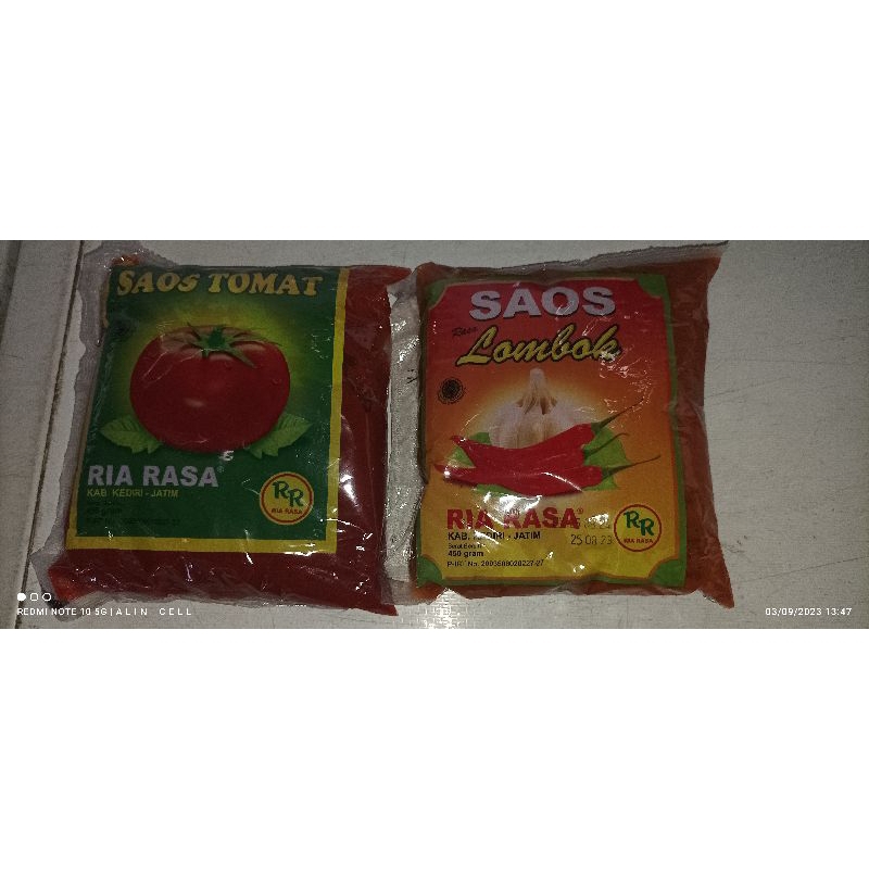 Saos Tomat atau Saos Lombok enak. Merk ria rasa. Berat 400gr.