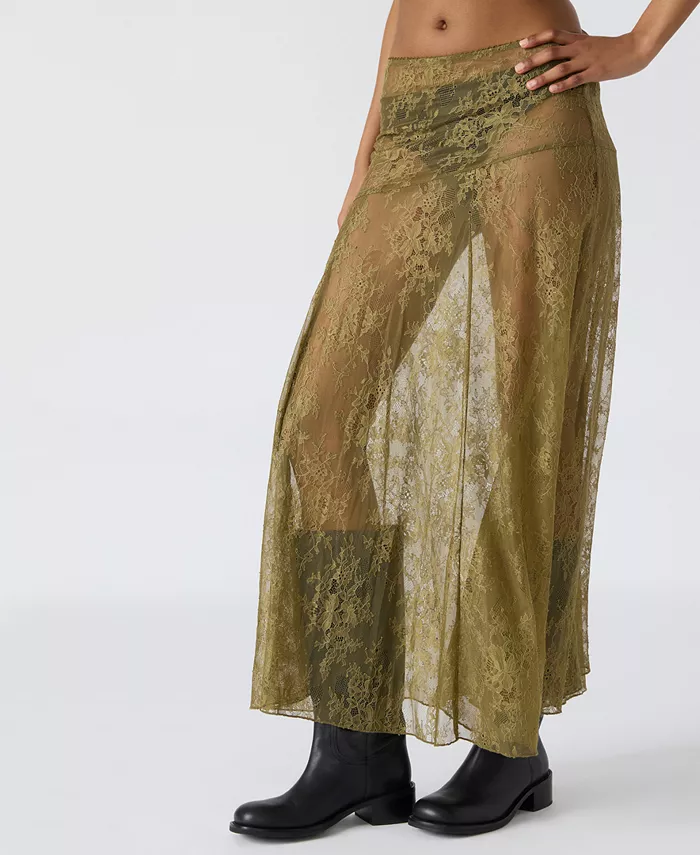 VmewSher New Vintage Spring Lace Patchwork Hem Women Skirt Floral Elastic Waist Female Flower Chic A-line Mid-calf Long Skirts