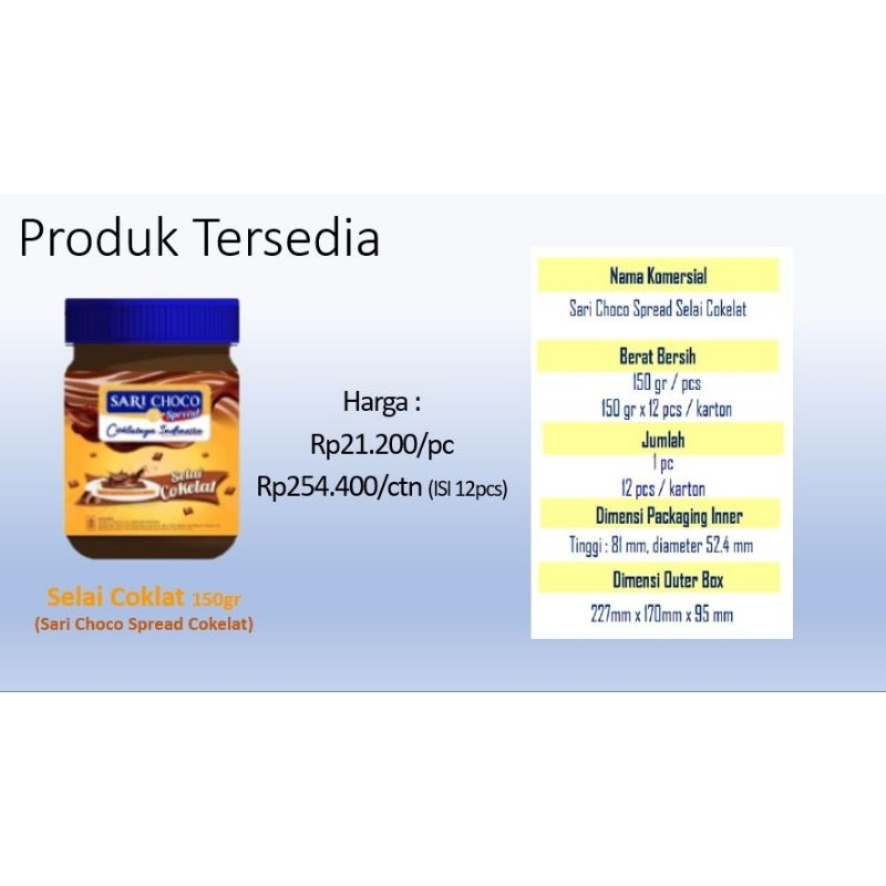 Selai Roti Sari Choco dengan rasa Cokelat yang enak dan nikmat, ukuran 150gr