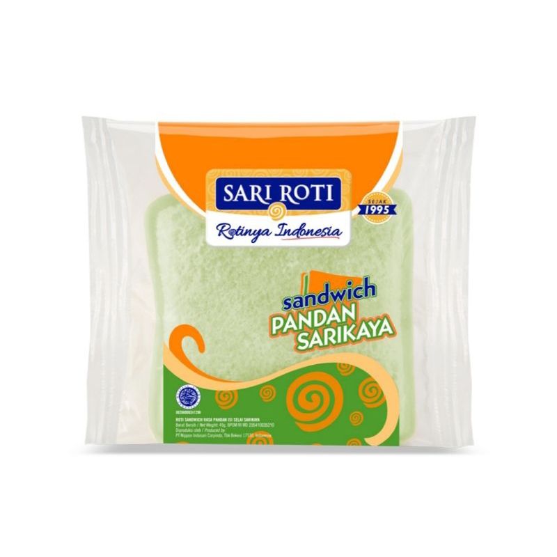 Sari Roti Sandwich Rasa Pandan Isi Selai Sarikaya 49gr