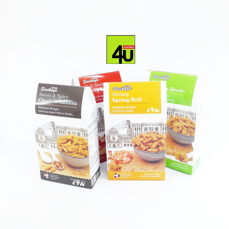 Satu brand senior di bilangan Bandung, dsk yg memutuskan terjun ke kancah cemilan berkemasan premium. Berangkat dari produsen cemilan khususnya produk spring roll, yg tadinya malang melintang di dunia grosir alias bal2an di bandung. Produk2 Sarikaya sudah sangat membumi di dunia grosir, pada tahun 2015 salah satu penerus dari pemilik Sarikaya memutuskan untuk membuat satu kemasan premium untuk merambah dunia cemilan nasional dgn packaging yg esklusif.
