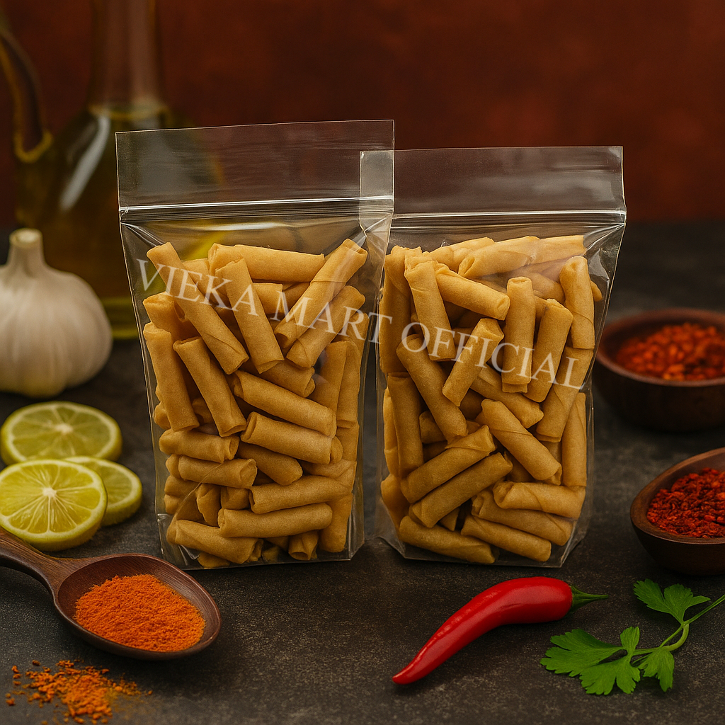 Snack spring roll dengan cita rasa pedas dengan 2 ukuran 250 gram dan 500 gram