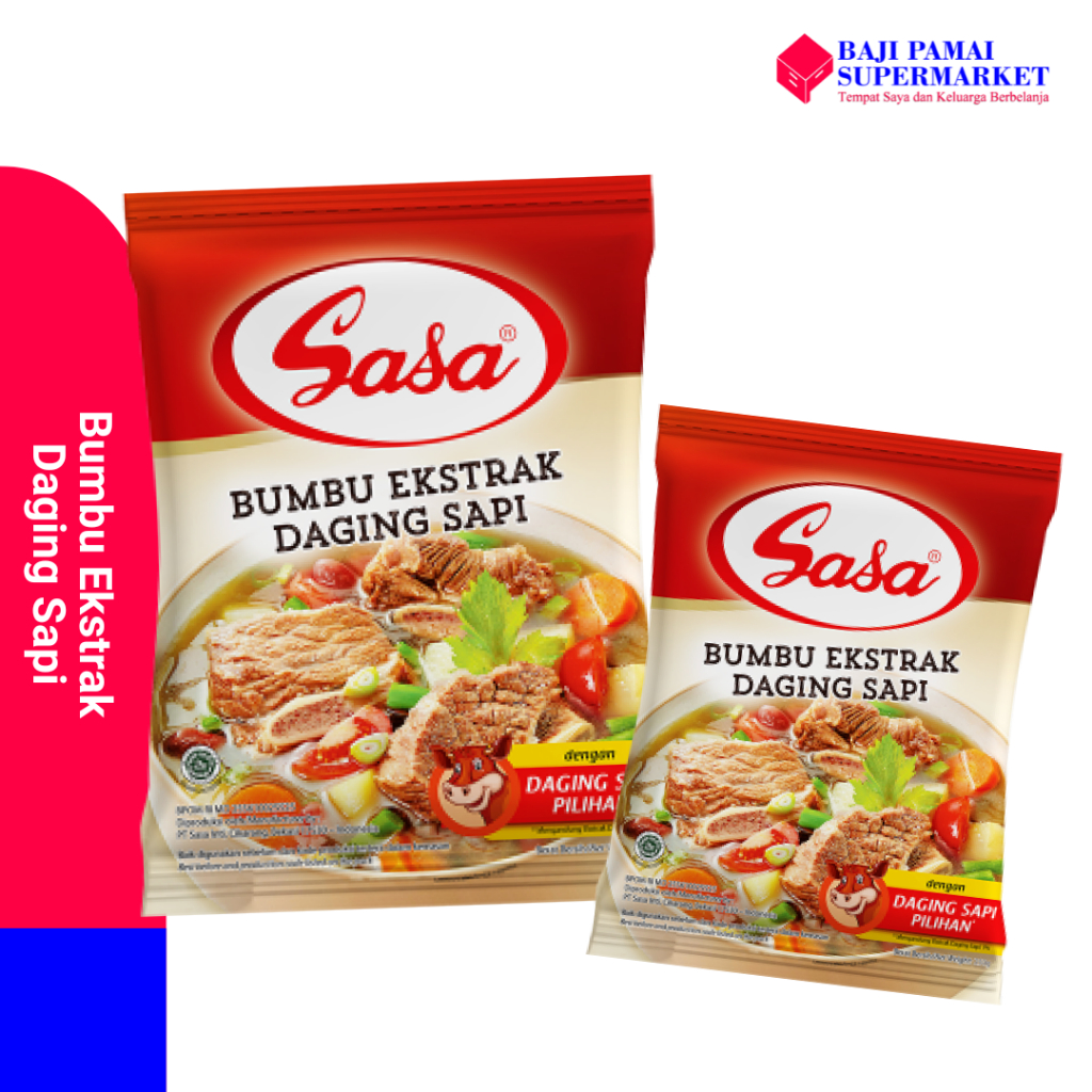 Sasa Bumbu Ekstrak Daging Sapi dengan paduan sempurna ekstrak daging asli dari sapi kualitas terbaik dan rempah pilihan, menghadirkan cita rasa terbaik dari setiap masakan.