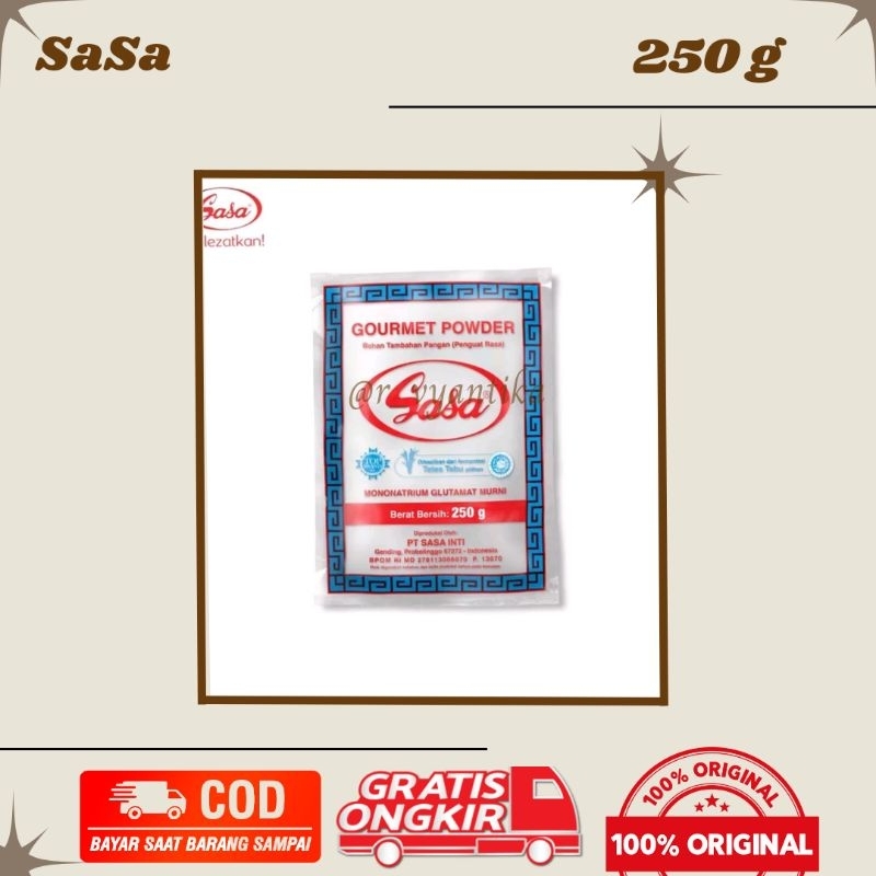 Sasa MSG terbuat dari bahan tetes tebu alami, melalui proses fermentasi yang menghasilkan protein glutamat secara alami dan diproses secara higenis untuk menghasilkan produk MSG berkualitas. Sasa MSG memiliki masa pakai 10 tahun.