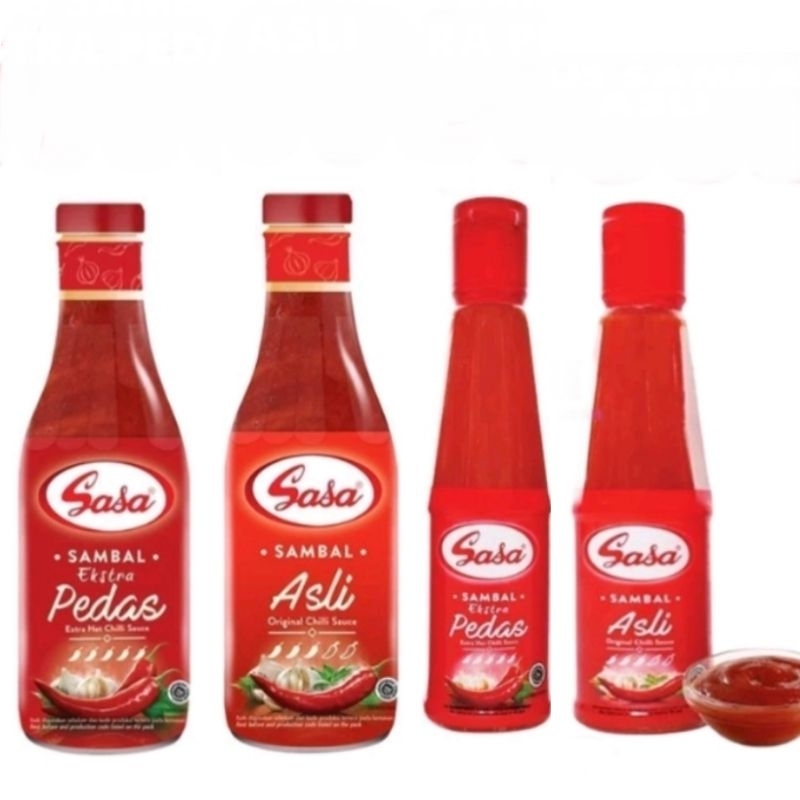Kini Tersedia Saus Sambal Sasa dengan ukuran yang berbeda serta ada sambal Asli & extra Pedas....