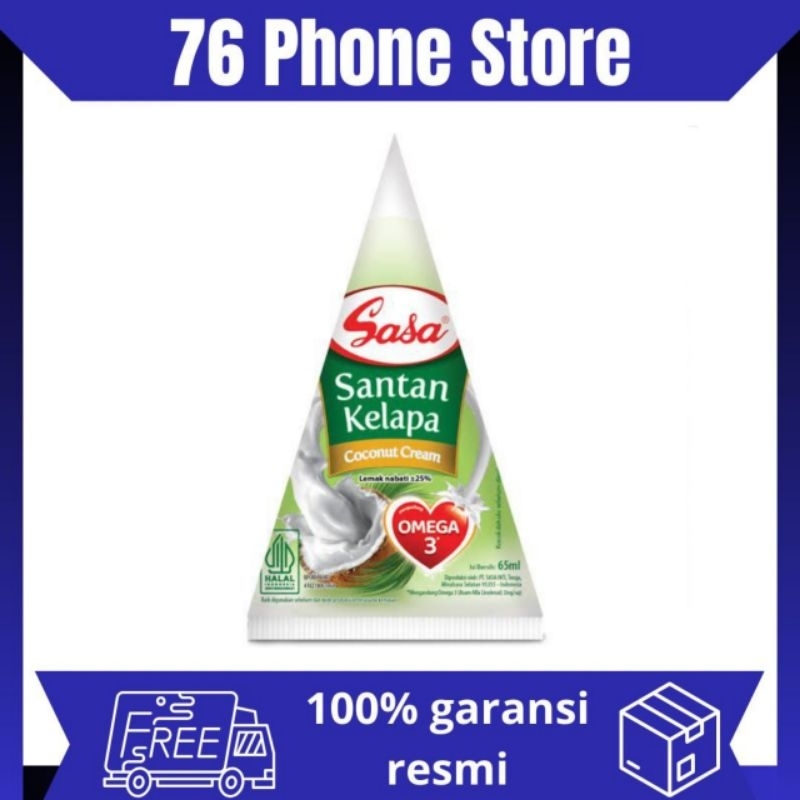 Sasa Santan Cair 65 ml INFORMASI PRODUK Sasa Santan cair adalah santan perasan pertama yang terbuat dari daging buah kelapa tua segar pilihan. Diproses secara higienis, dengan teknologi modern. Rasa dan aroma santan asli. Dapat dikonsumsi langsung (tidak perlu dimasak dulu) Tanpa Bahan Pengawet 0% cholesterol. Sasa Santan Cair dapat digunakan secara langsung tanpa perlu dimasak dahulu dengan kekentalan yang pas. Hasil masakan kita jadi gurih dan enak. Tanpa bahan pengawet dan bebas kolesterol. Jika belum dibuka, produk bisa disimpan pada suhu ruang (25 30C). Setelah kemasan dibuka, produk bisa disimpan di lemari pendingin untuk dikonsumsi kembali. Sebaiknya habis dalam waktu 3 (tiga) hari agar produk tetap fresh. Jangan disimpan dalam kondisi beku ( lt; 4C) karena bisa menyebabkan kerusakan produk. - Berat: 65 ml Kami senang melayani kebutuhan protein Anda. Apabila menyukai produk kami, mohon berikan review positifnya.