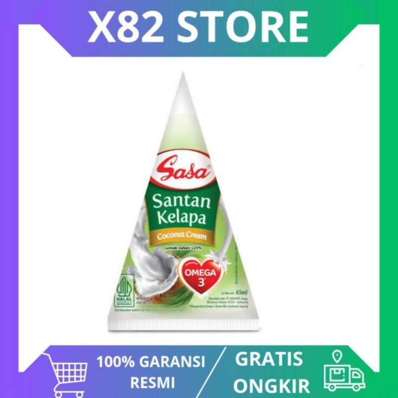 Sasa Santan Cair 65 ml INFORMASI PRODUK Sasa Santan cair adalah santan perasan pertama yang terbuat dari daging buah kelapa tua segar pilihan. Diproses secara higienis, dengan teknologi modern. Rasa dan aroma santan asli. Dapat dikonsumsi langsung (tidak perlu dimasak dulu) Tanpa Bahan Pengawet 0% cholesterol. Sasa Santan Cair dapat digunakan secara langsung tanpa perlu dimasak dahulu dengan kekentalan yang pas. Hasil masakan kita jadi gurih dan enak. Tanpa bahan pengawet dan bebas kolesterol. Jika belum dibuka, produk bisa disimpan pada suhu ruang (25 30C). Setelah kemasan dibuka, produk bisa disimpan di lemari pendingin untuk dikonsumsi kembali. Sebaiknya habis dalam waktu 3 (tiga) hari agar produk tetap fresh. Jangan disimpan dalam kondisi beku ( lt; 4C) karena bisa menyebabkan kerusakan produk. - Berat: 65 ml Kami senang melayani kebutuhan protein Anda. Apabila menyukai produk kami, mohon berikan review positifnya.