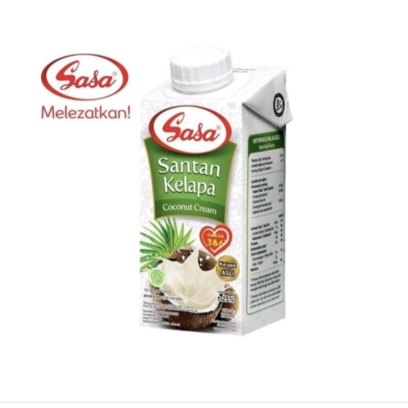 Sasa Santan cair adalah santan perasan pertama yang terbuat dari daging buah kelapa tua segar pilihan. Diproses secara higienis, dengan teknologi modern. Rasa dan aroma santan asli. BPOM : MD 418213069062